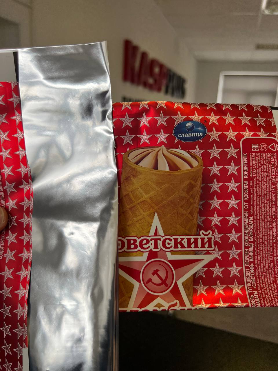 — Ложки одноразовые для мороженого, которые крепятся прям на крышку.