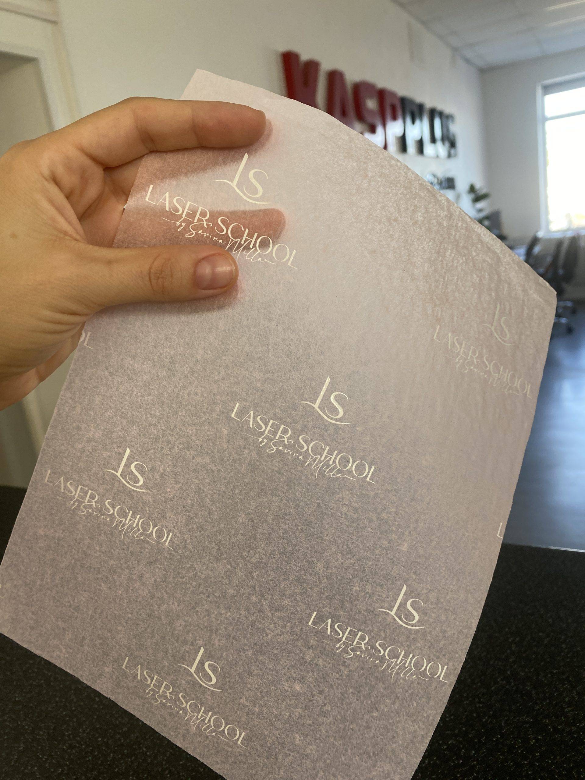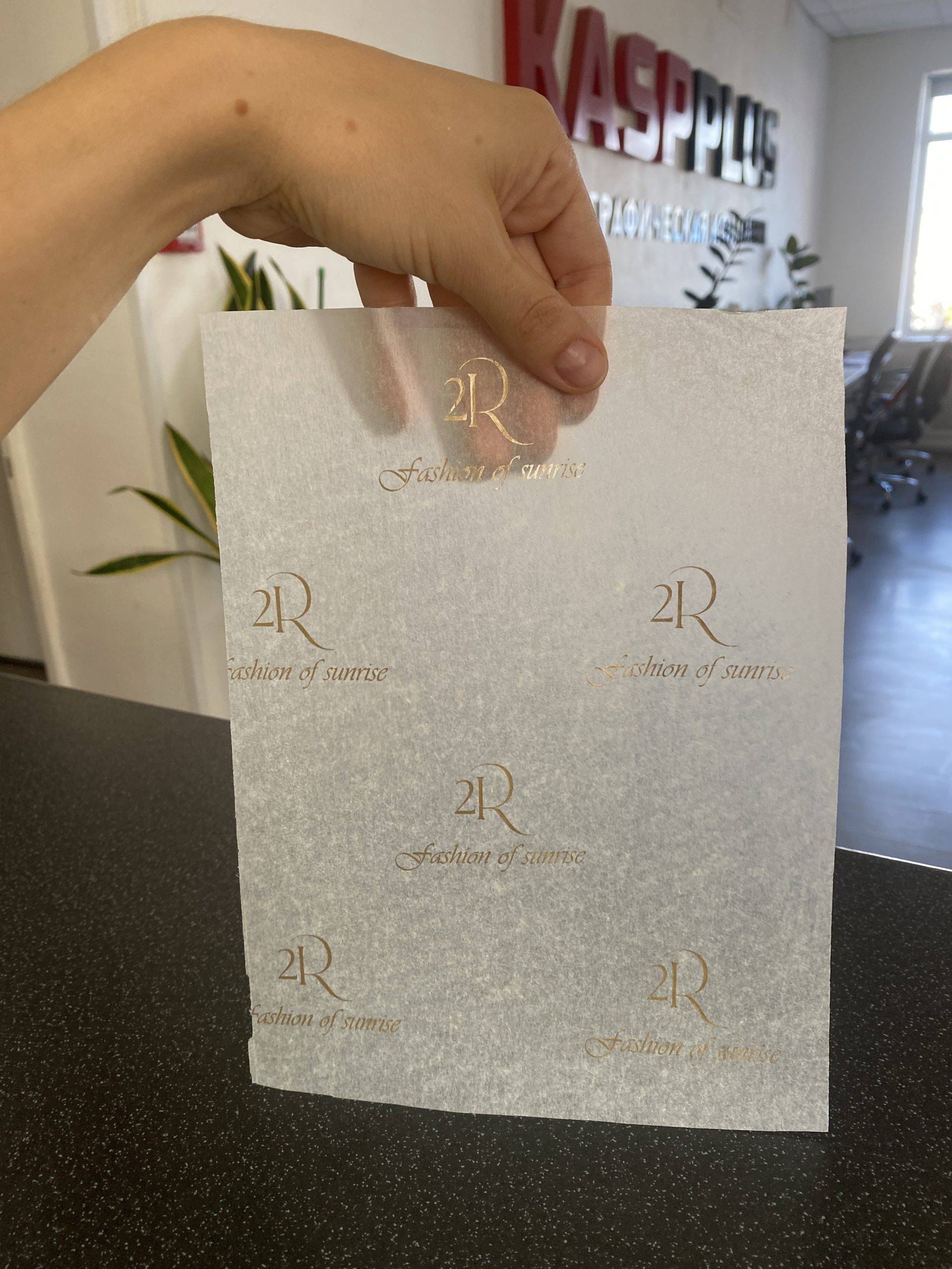 Печать логотипа: Мы нанесем ваш логотип на тишью бумагу, чтобы подчеркнуть индивидуальность вашего бренда.